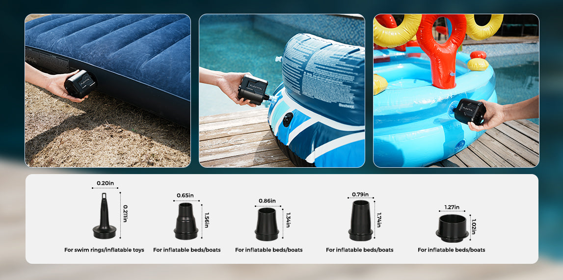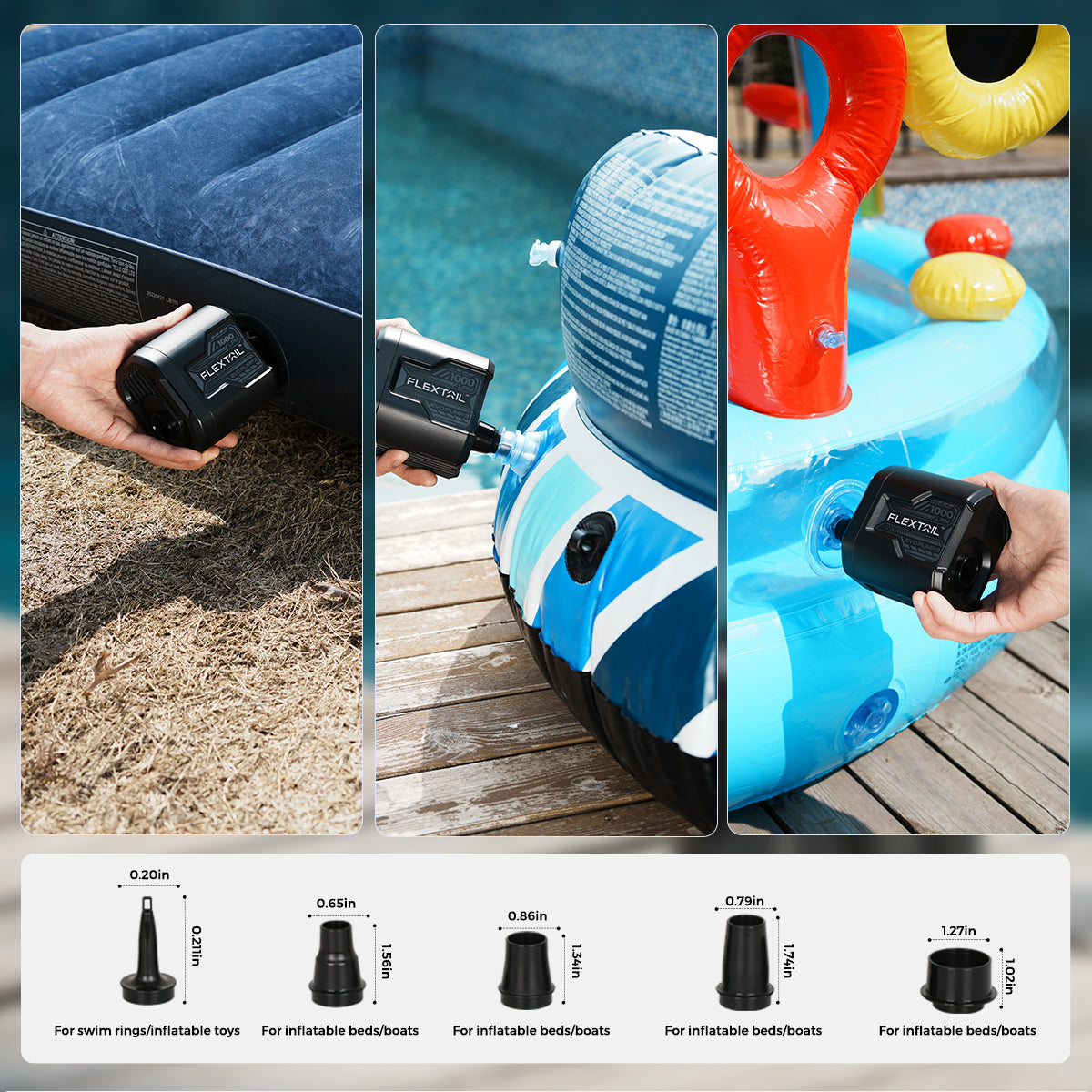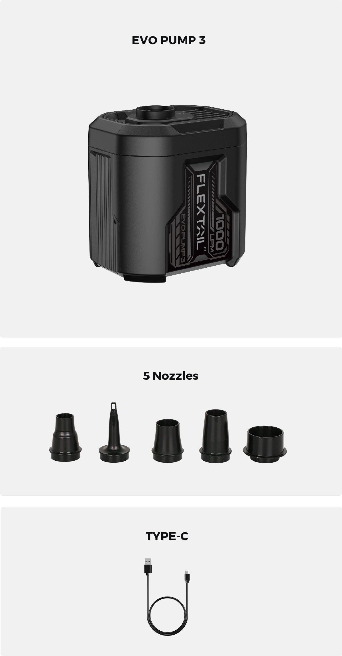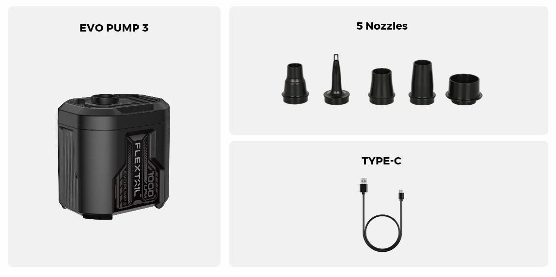 The FLEXTAIL EVO PUMP 3, weighing only 0.77 pounds, is a lightweight yet powerful air pump. With its 5kPa pressure, it effortlessly inflates various items such as air mattresses, sleeping pads, pool floats, swim rings, beach balls, and other inflatable toys. (Please note: It is not suitable for inflating balloons or tires.)