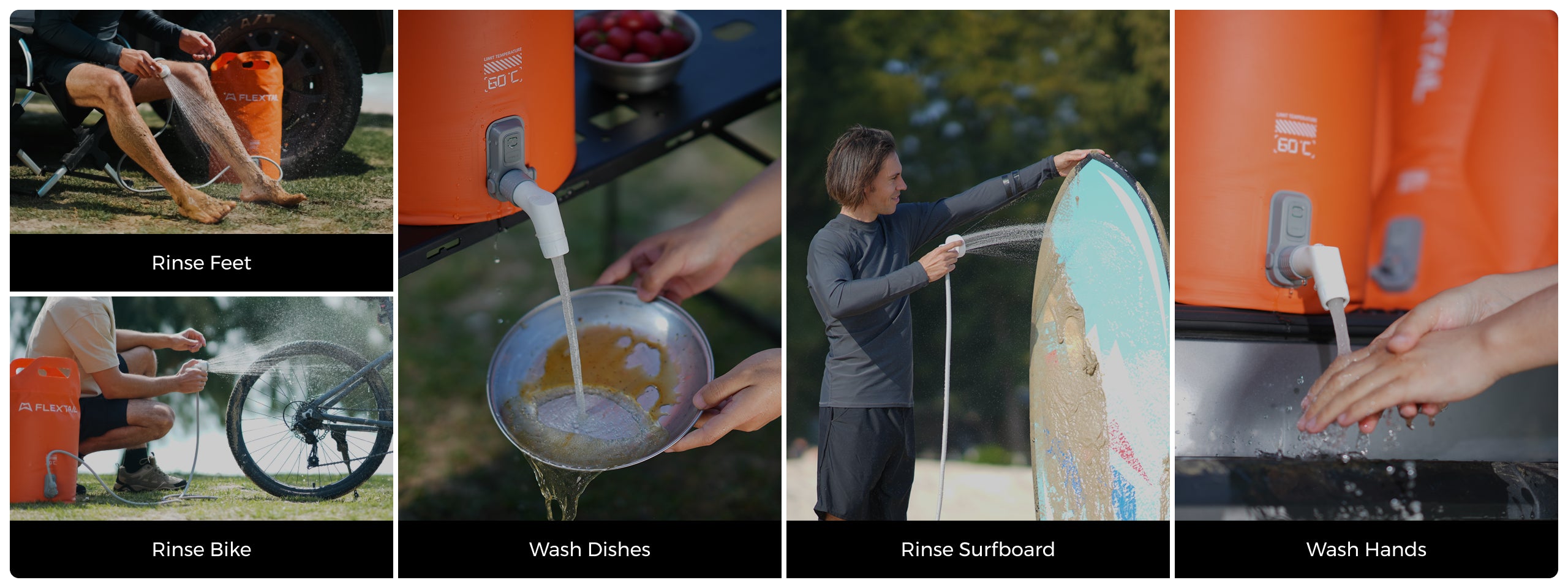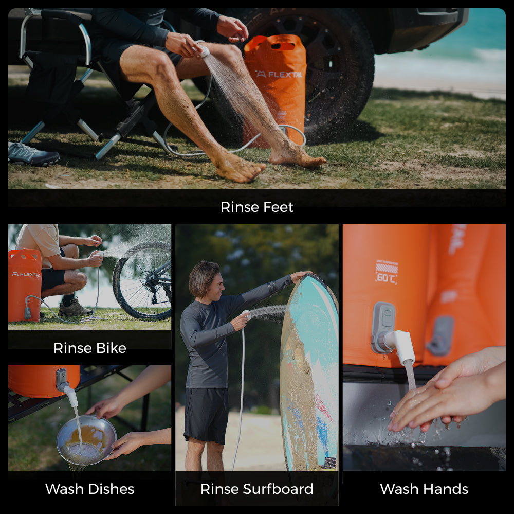 One unit, endless uses: shower yourself, wash your hands, rinse produce, blastoff paddleboards, bathe pets, spray down bikes-or even give your car a quickrinse.