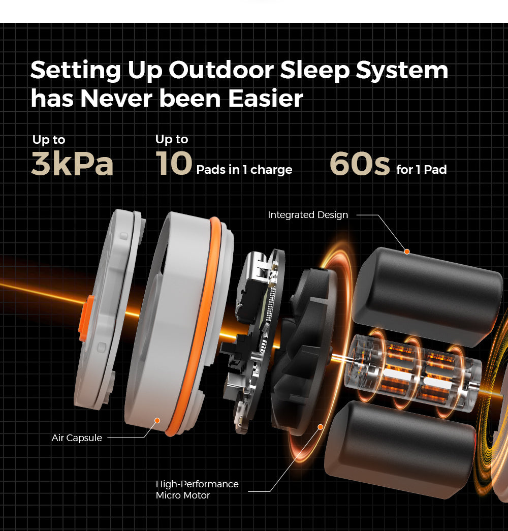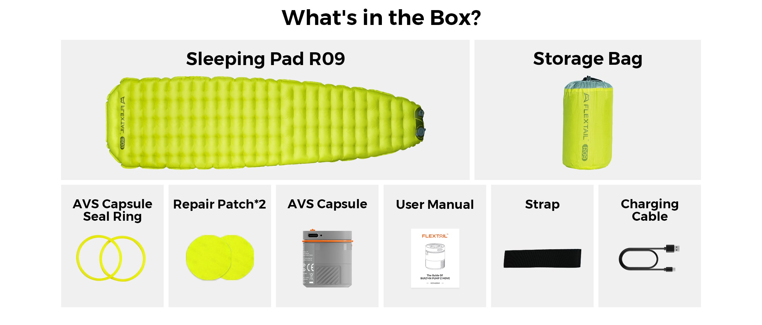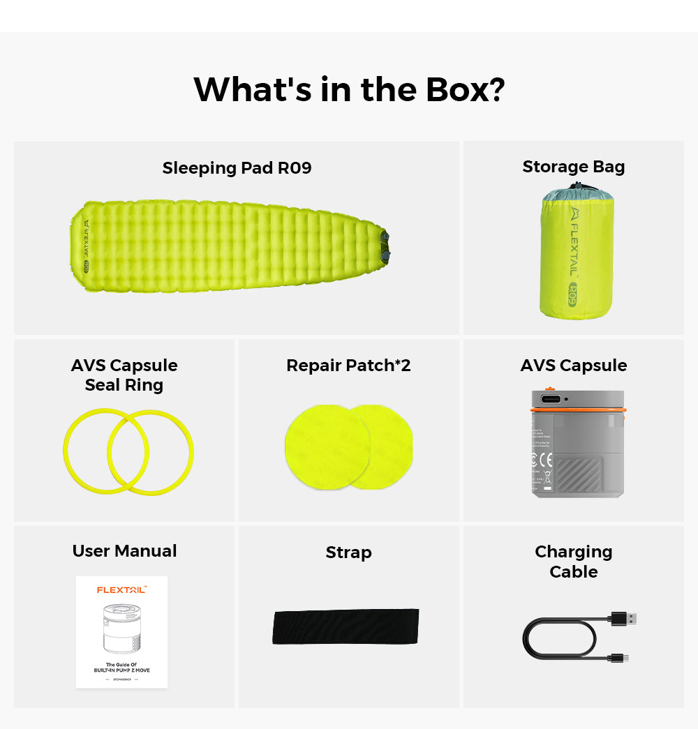 It comes with the pump and a charging cord, a little repair kit, and a stuff sack.